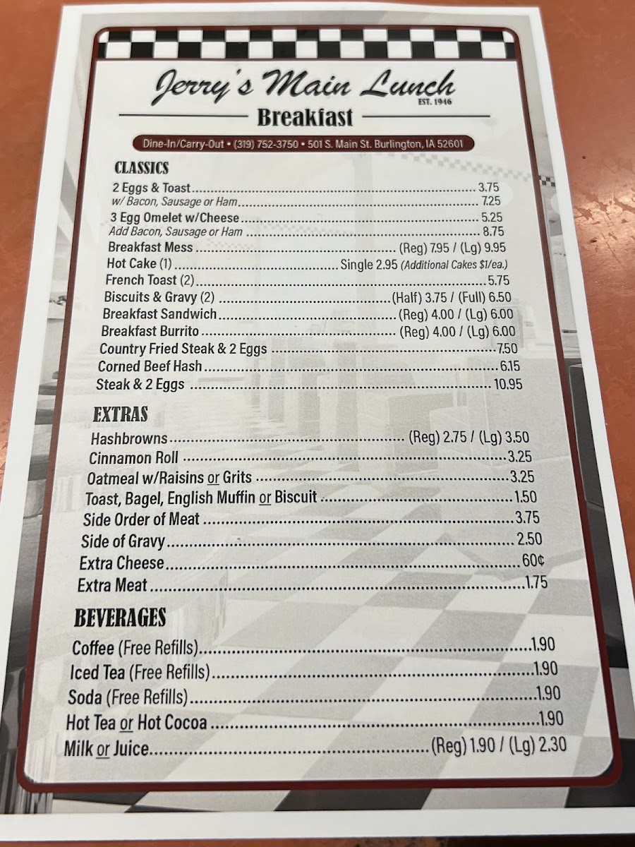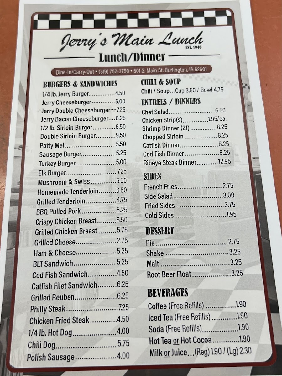 Welcome to Jerry's Main Lunch, a charming little gem located at 501 S Main St, Burlington, IA. This cozy diner exudes heartwarming nostalgia with its limited counter seating, offering an intimate view of the chefs whipping up delicious comfort foods right before your eyes.